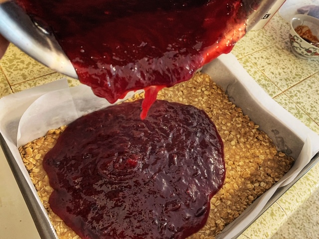 - Stir in vanilla extract and let the plum mixture cool down to room temperature. You can even refrigerate this mixture at this point and pick it back up again the next day to make the cobbler bars. Just make sure you bring it up to room temperature to make it easier to spread.