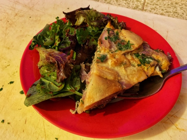 - Totally optional: brown the top under the broiler for a few minutes to crisp up the top layer of potatoes. Slice into six (or eight) equal parts and serve with a side salad.