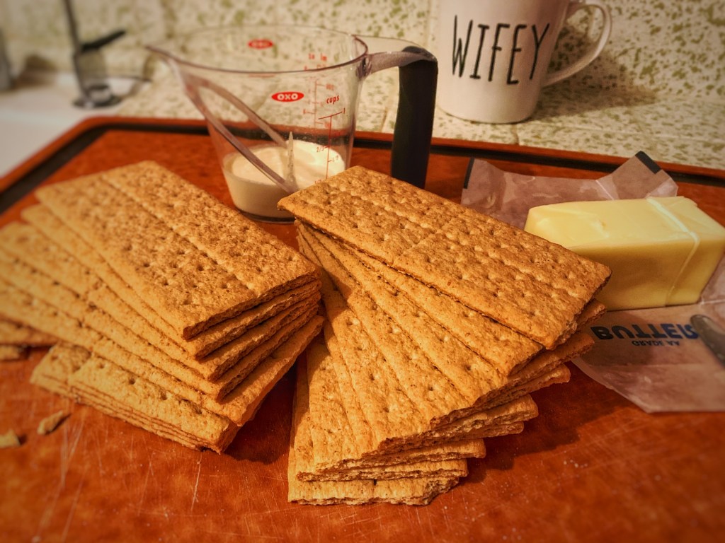 • 18 sheets of graham crackers, ground finely (in a food processor or in a ziploc bag using rolling pin)