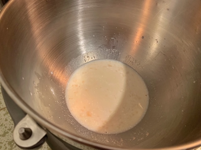 - Combine the milk with 0.25 cup of water and warm them up to about 110°F. This is the optimal temperature for yeast and if you don’t have a thermometer, you can approximate this. This temperature should feel like warm bath water so you should be able to stick your finger in it without feeling like you’re getting burned. Place this mixture in a mixing bowl and then stir in the sugar and yeast. Set aside for about 5 minutes or until it looks foamy.