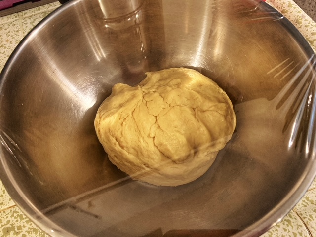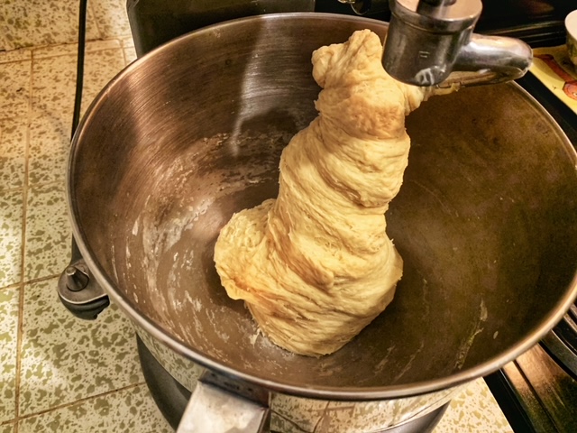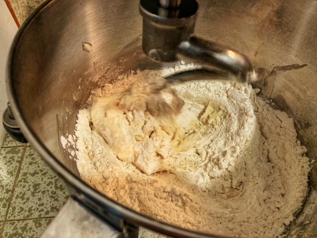 - After all the butter has been incorporated, add the remaining flour and then continue to mix with the dough hook for about 5 minutes. The dough will pull from the sides of the bowl, maybe not too cleanly because of all the butter in it but you’ll see that it’s like a bread dough if bread is very buttery. Cover the bowl with plastic wrap and leave at room temperature for 2 hours or until it doubles in size.