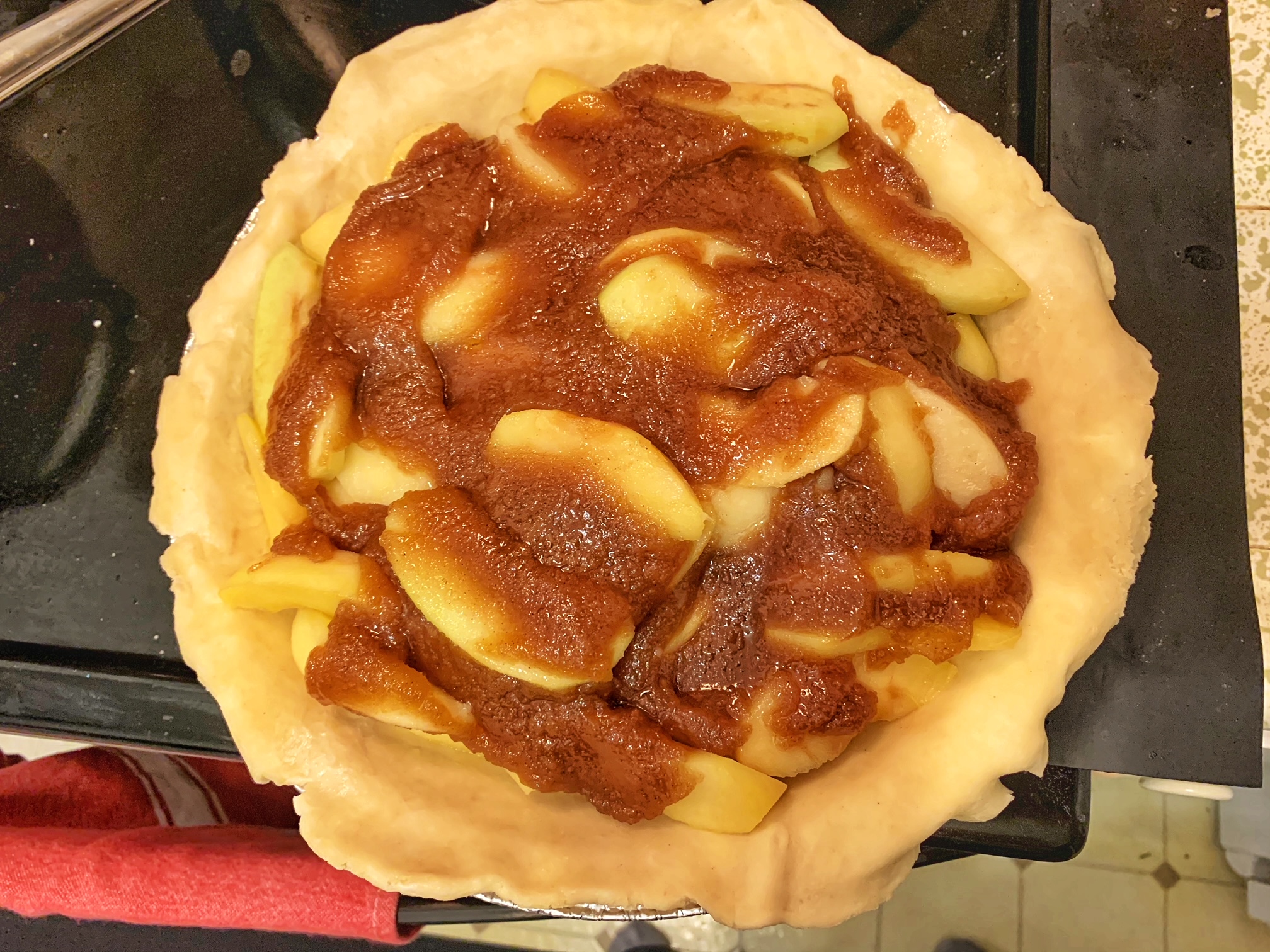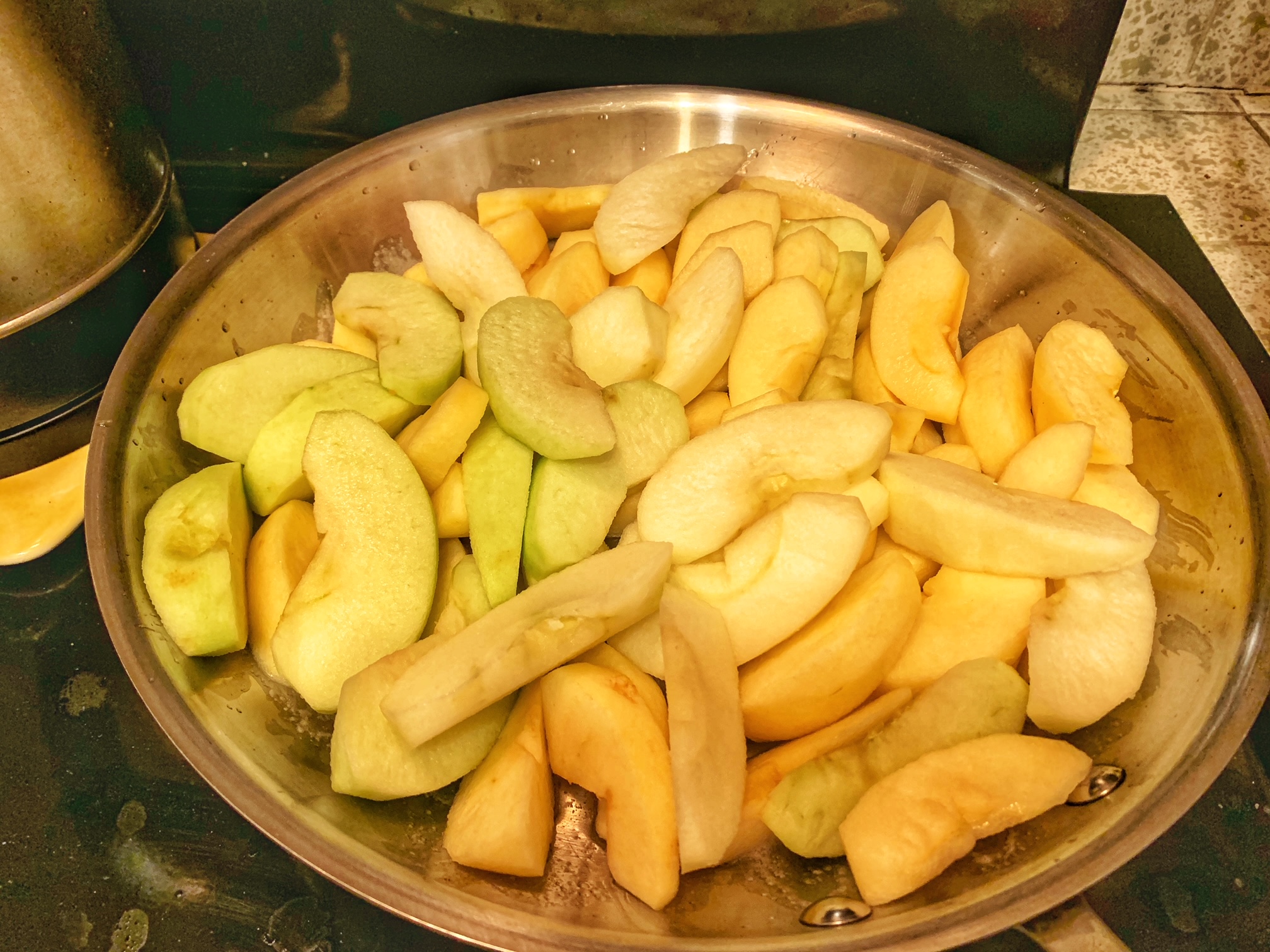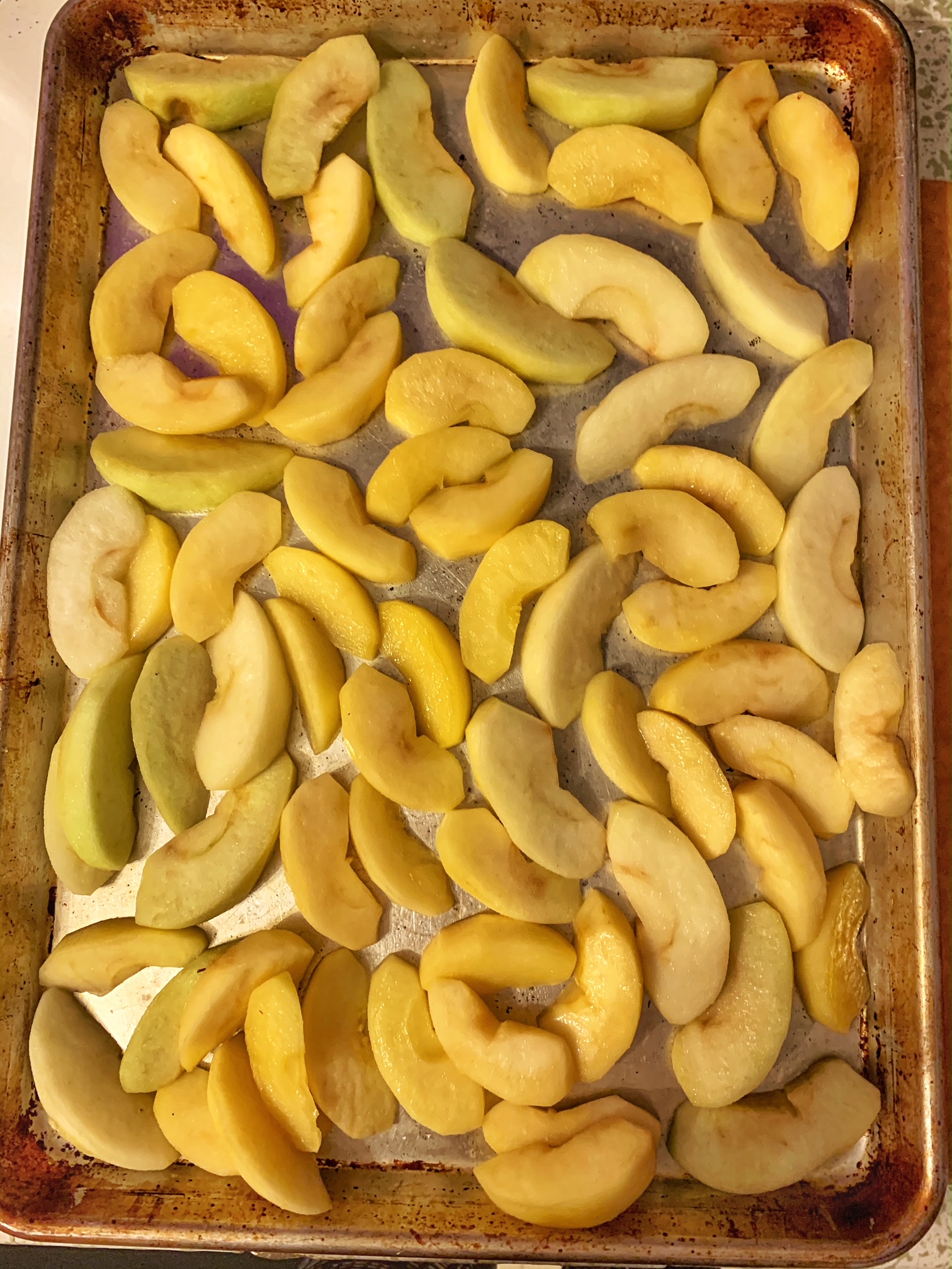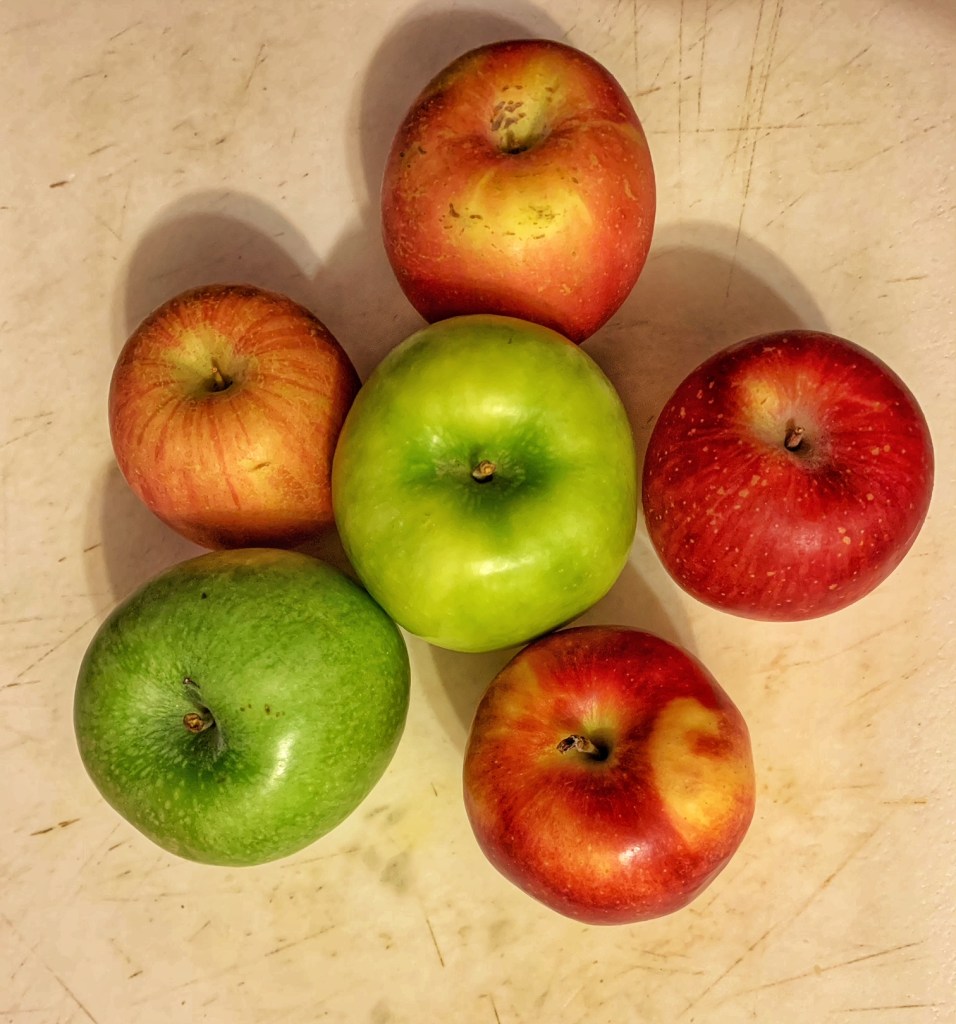 - 5-6 apples (if your apples are on the smaller side, get 6), peeled, cored, and sliced into 12 wedges. Don’t slice any thinner than that. I also use a mix of Granny Smith and other kinds. Tbh I don’t remember the other kinds because they just showed up at my door. Another story for another time