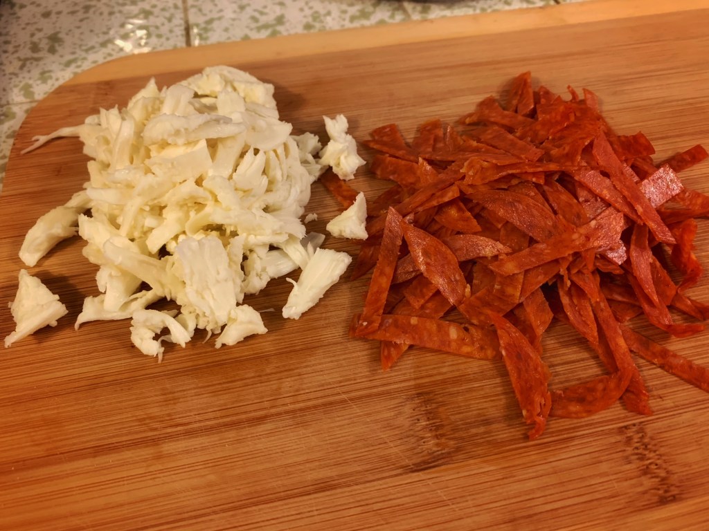 - About 20-25 slices of pepperoni, sliced to thin strips