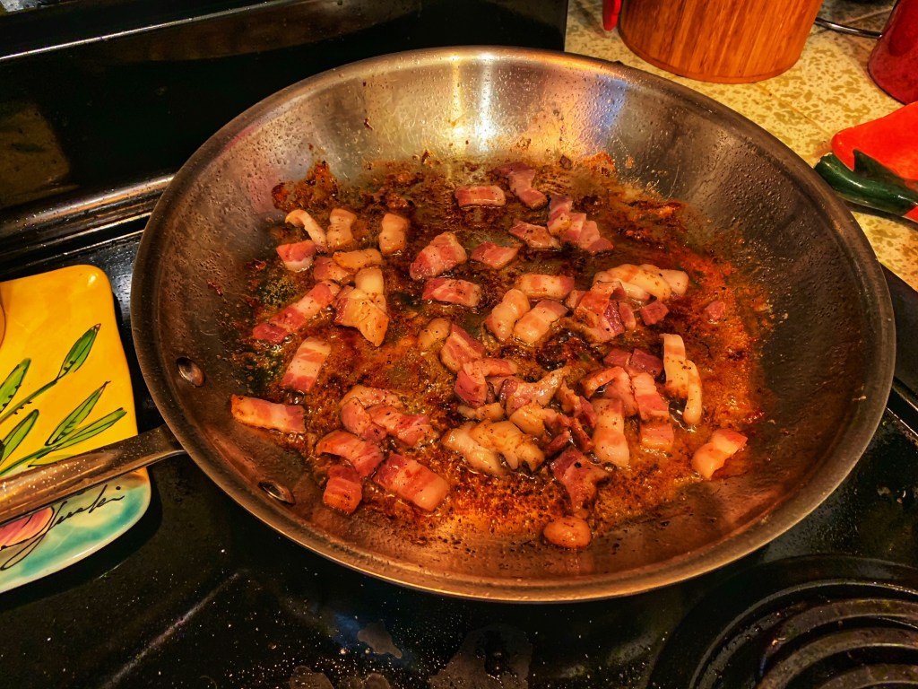- 3 strips of bacon, sliced (we use thick-cut bacon so if you are using regular bacon, you may want to use 4-5 strips)